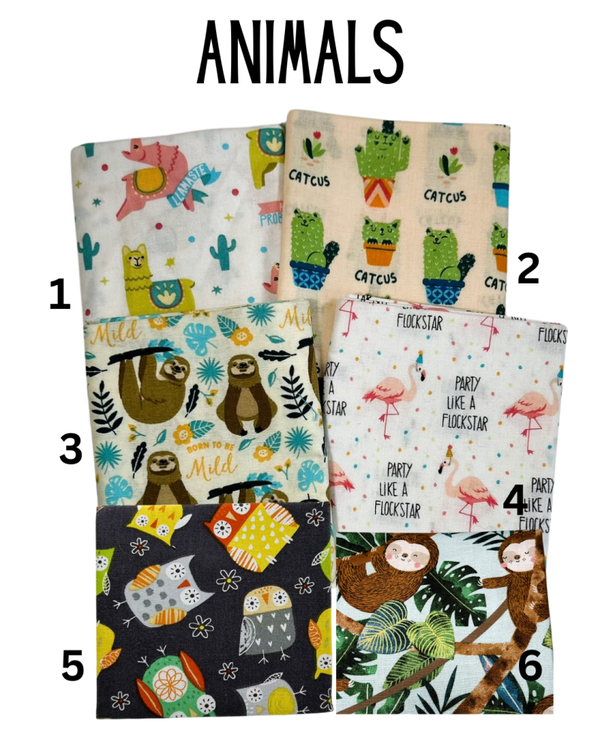 Please select the number that corresponds with the fabric choice you have made. Example: If I wanted sunflowers, I would select "Floral" or "Misc" as the Fabric Title. Then, I would select the number that corresponds to the sunflower themed ones #3 & #6